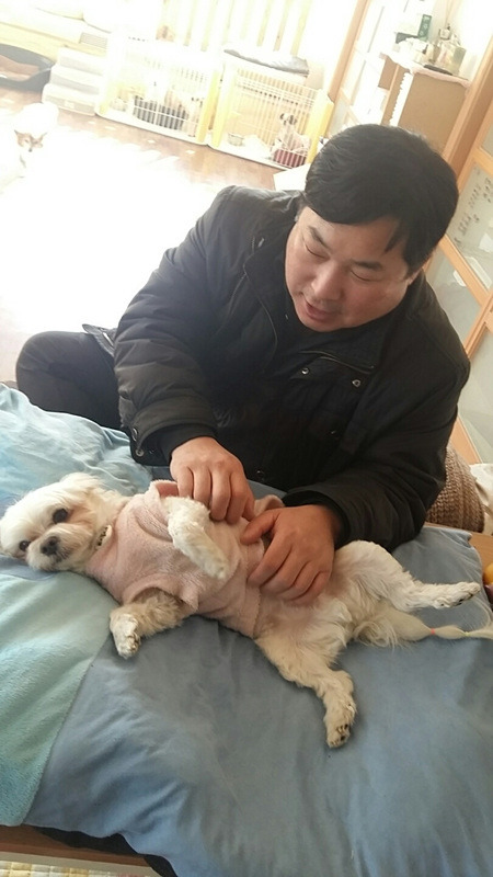 티구니라는 이 말티즈 아이는 지금 입양센터에 있는 온화나 백설이처럼 입질이 매우 심했던 아이였는데 지금은 보시다시피 사람을 무척 좋아하고 처음보는 뚱아저씨에게도 배를 내밀고 애교를 부릴 줄 아는 아이가 되었답니다. 역시 사랑의 힘으로 꾸준히 돌보면 아이들도 긍정적으로 변하게 됩니다.