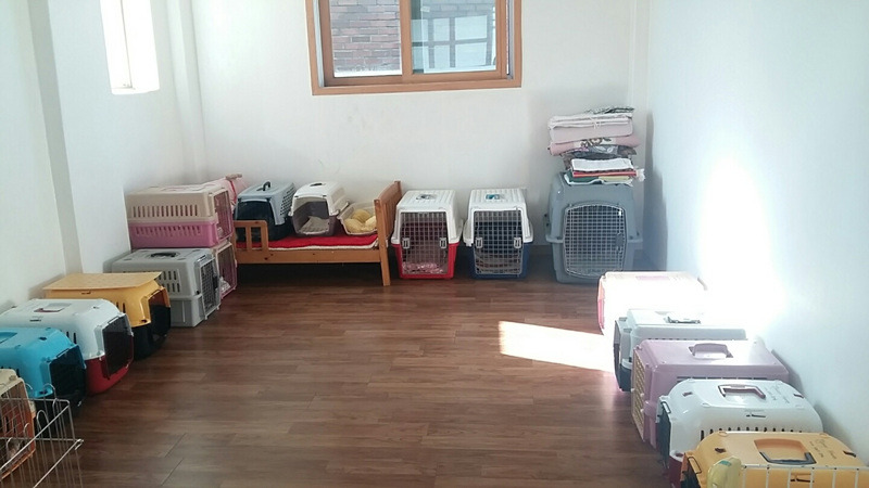 티구니 하우스 아이들이 밤에 잠을 자는 공간. 모두 이동장 안에서 잠을 잡니다.