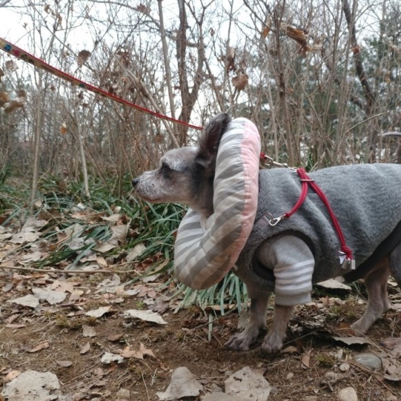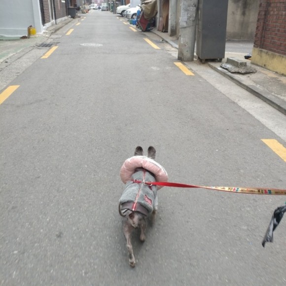 반면 번개는 산책도 좋아하는 아이에요. 호기심이 많아 보이는 곳마다 냄새를 맡아봐야 하고, 꼭 냄새도 묻히고 가는 아이랍니다. 심한 줄당김은 없어도 호기심에 여기저기 이끌 수는 있어요.