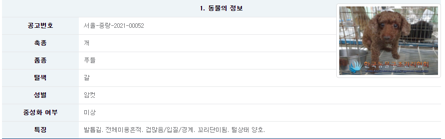 푸들 / 여아(중성화완료) /2살추정 / 4.4kg