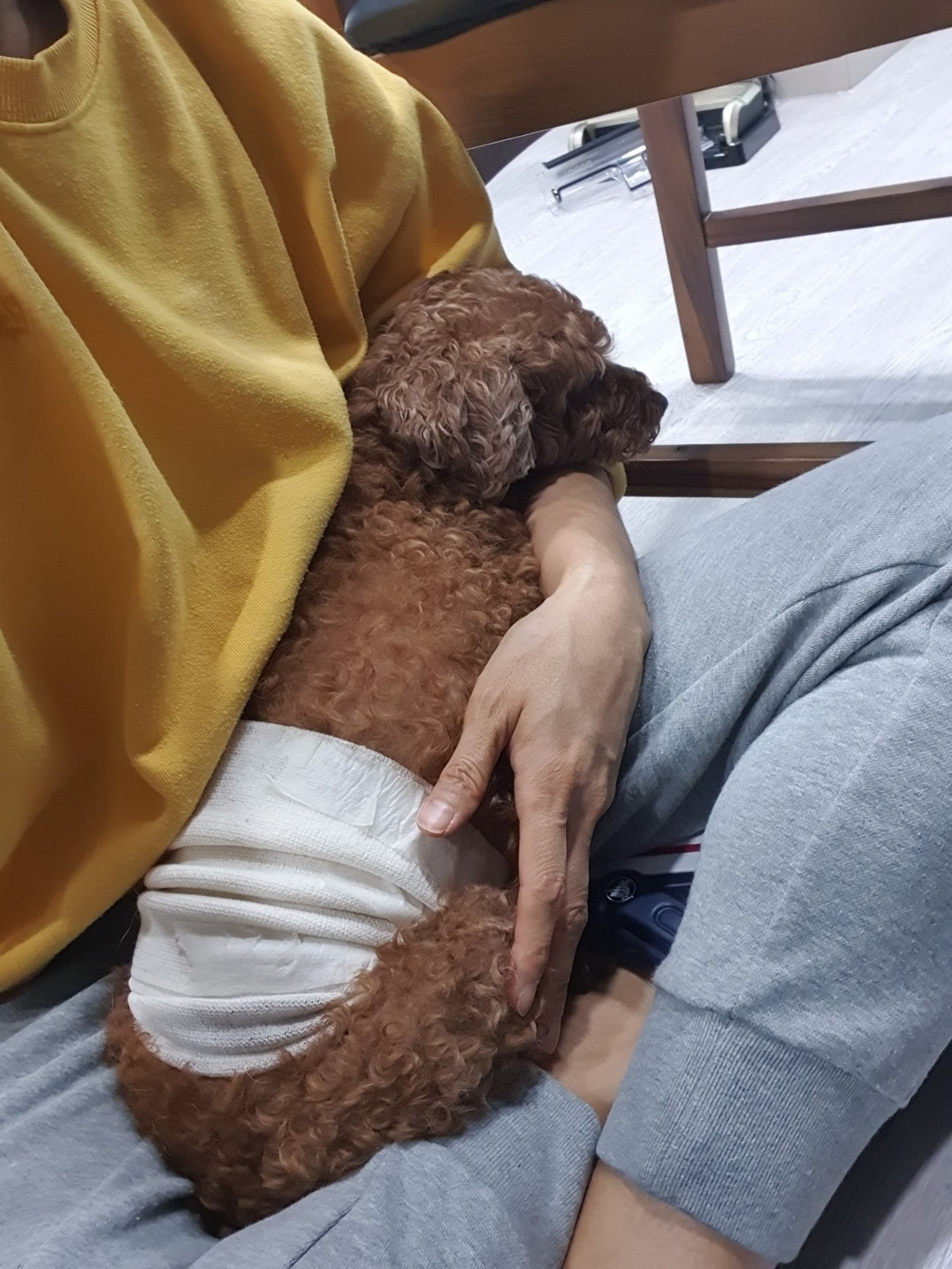 슬개골도 좋고 피부도 깨끗한 편이며 슬개골 검진시 오른쪽 다리 안쪽으로 약간의 유선종양이 발견되어