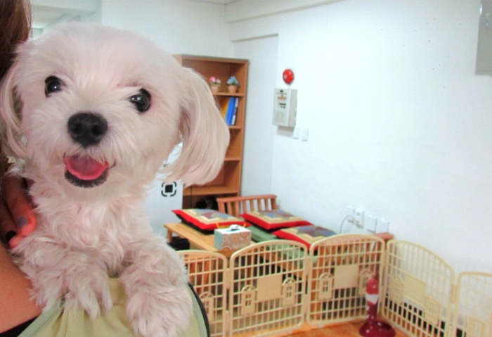 잠깐 케이지 바깥에 나왔을 때 봤던 밍키는 귀여움 그 자체였어요. 산책을 시켜주기 위해 어깨줄을 하자 작은 몸을 들썩이며 기뻐하고, 잠깐 다른 일이라도 할라치면 안아달라고 애교를 부리고, 케이지에서 나온 것이 기쁜지 발랄하게 뛰어다니는 어여쁜 강아지였어요.