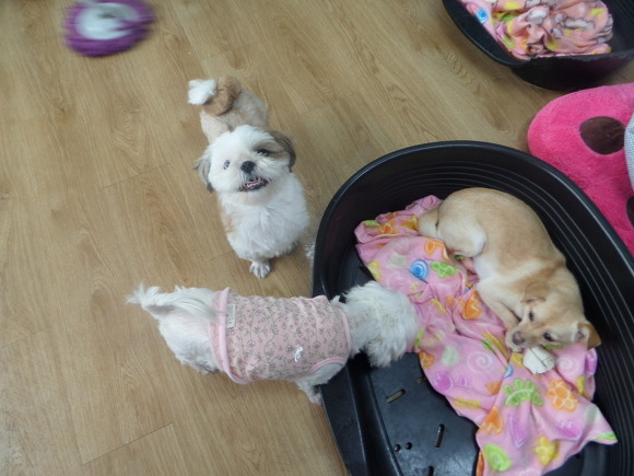 절친 노엘이와 까치의 노는 모습이 부러운 백설이도 어서 가족이 생겼으면 좋겠습니다.