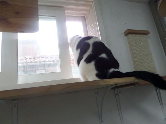 탈출냥 밀크는 하염없이 밖만 보고 있습니다.