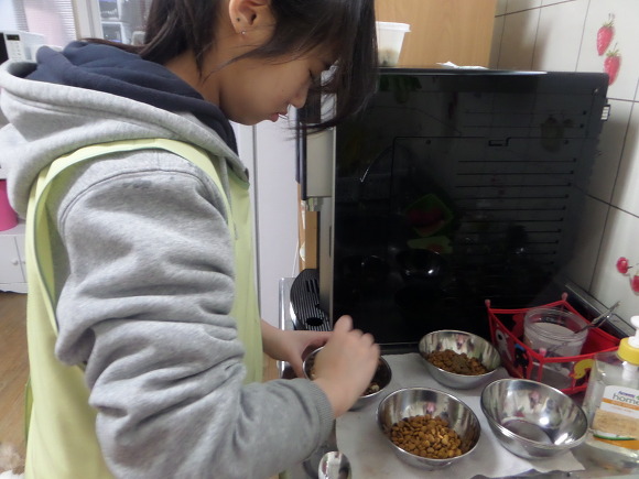아이들 밥을 정성껏 준비합니다.