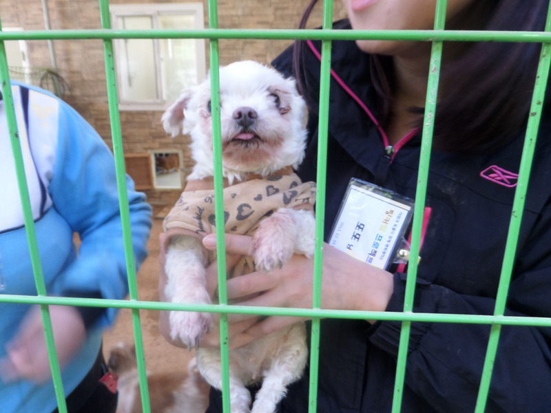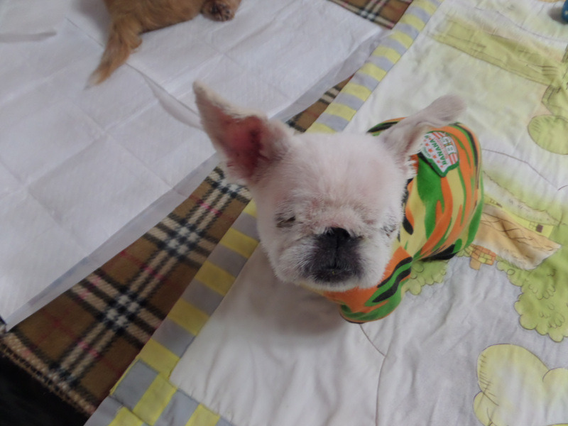 행강호텔에서 보호받고 있는 두 쪽 눈이 다 없는 가여운 페키니즈