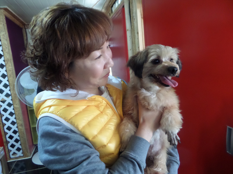 자신이 울산에서 구조한 꼬비를 안아주는 눈솜눈동님 : 꼬비야 그동안 잘 지냈니?