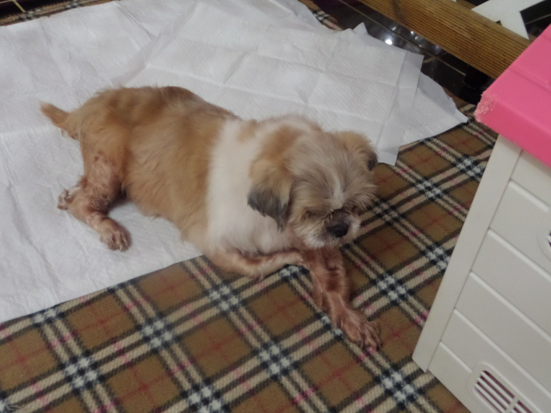 행강호텔에서 보호받고 있는 양쪽 발이 다 부러진채 구조된 요크셔테리어