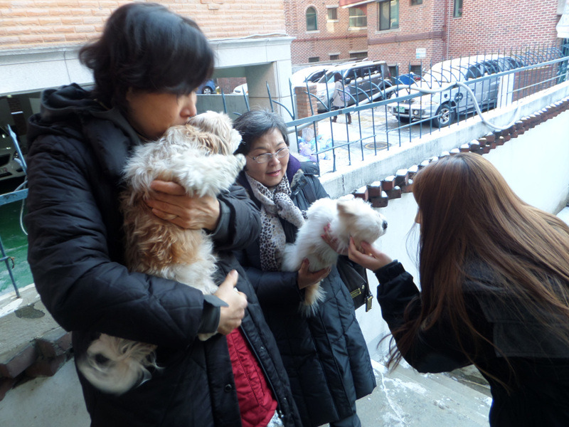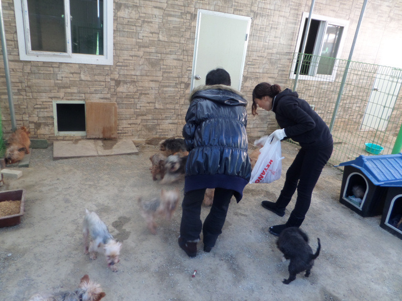 강아지들에게 간식을 나눠주는 bokrelove님과 호빵호떡맘님