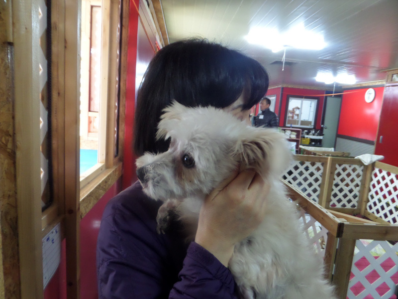 종견번식장에서 구조한 말티즈 강아지(10살 추정)을 안고 있는 또또님.
