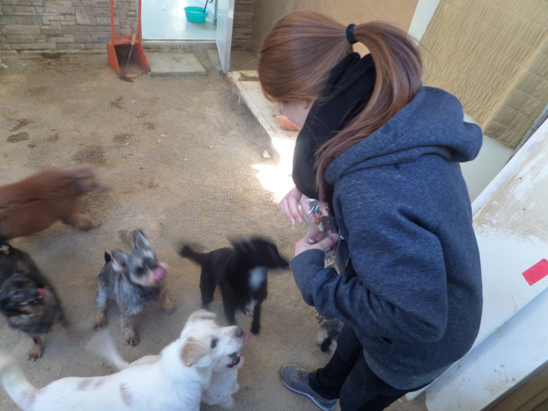 강아지들에게 간식을 나눠주는 눈솜눈동님