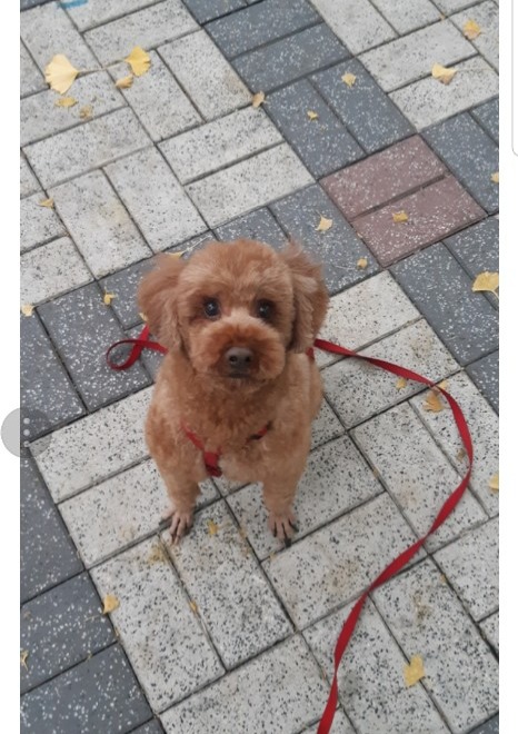 적당한 크기에 사랑스런 얼굴의 갈색푸들 용현이