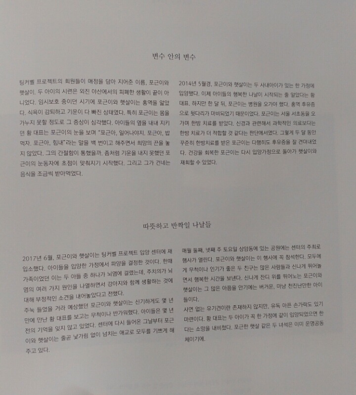 작성자뚱아저씨 작성시간 18.01.29 예쁘게 잘 나왔네.. 이 잡지 보고 좋은 입양자가 나타나주시면 좋겠어요.