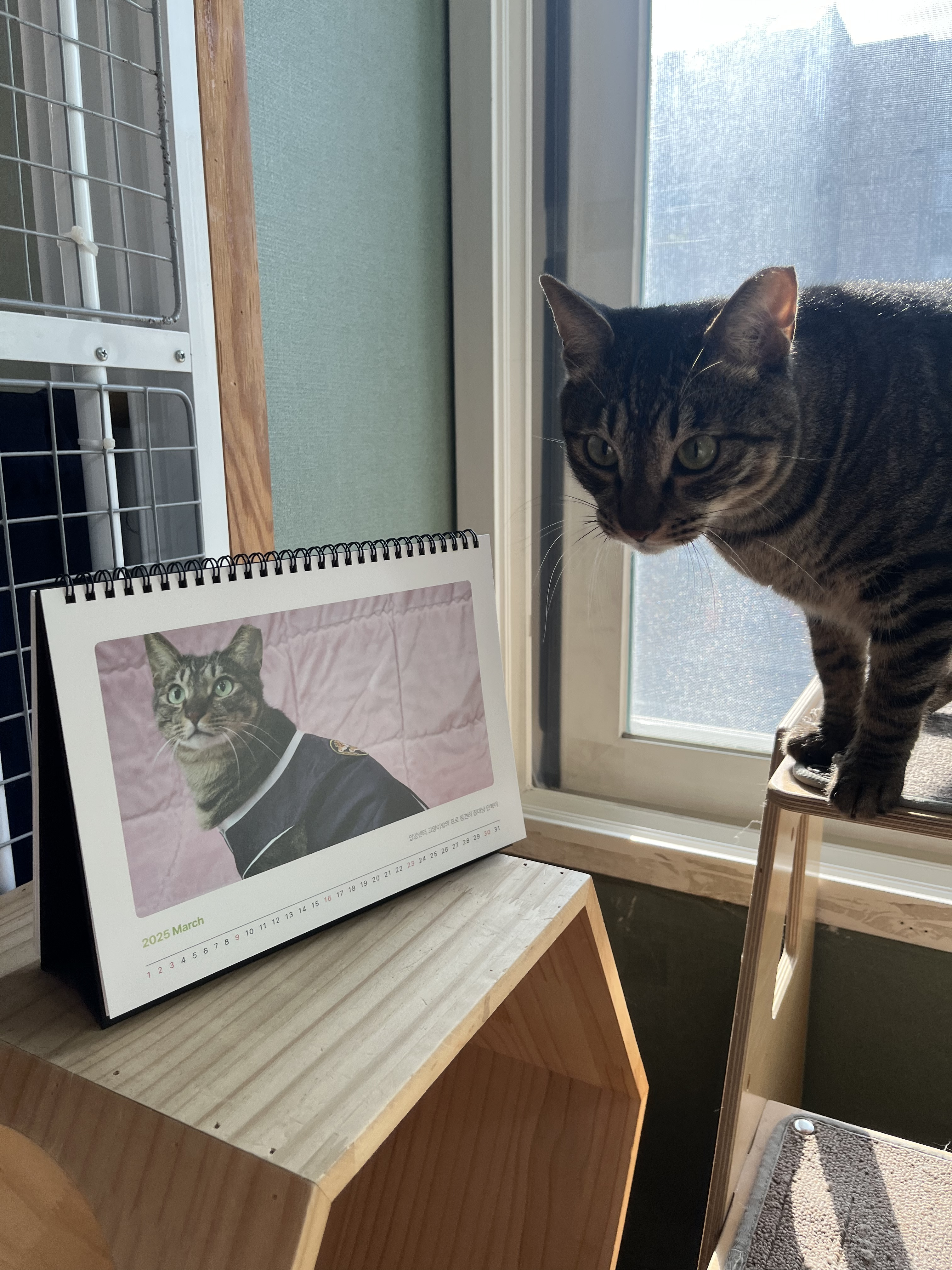 달력을 들고 고양이방에 들어가니 아이들이 모여 구경하더라구요!