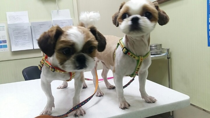 오늘 미용한 하나(왼쪽) 세나 (오른쪽)입니다.