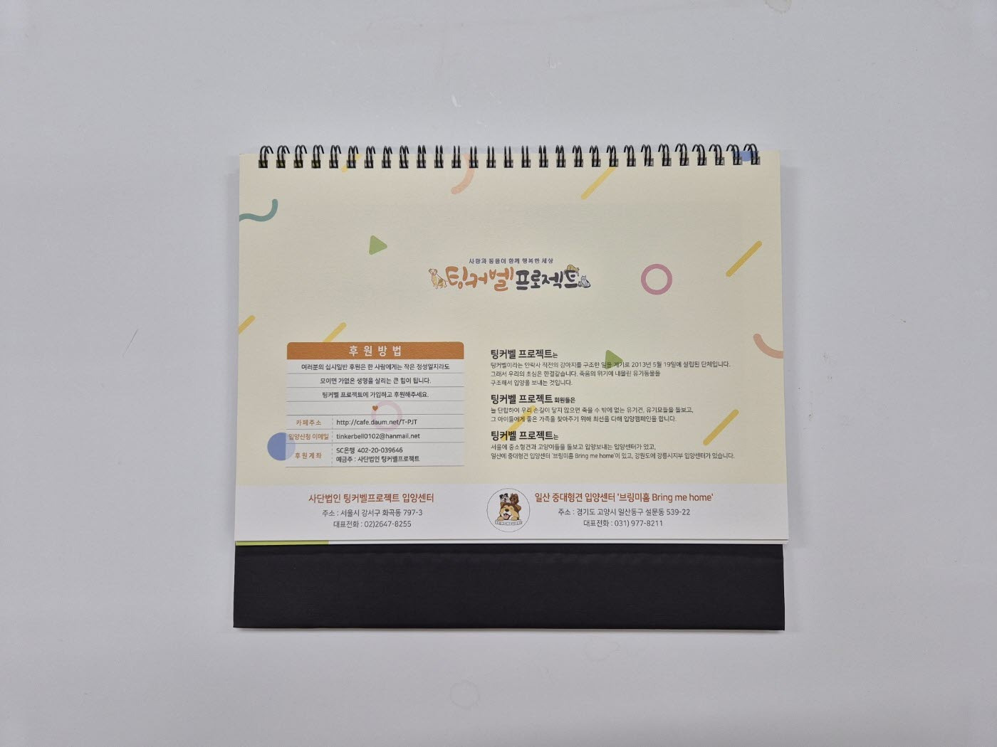 혹시 회원님들 중에 "5부 이상 구매하기는 벅찬데 그립톡만 따로 구입할 수 없을까요?" 하시는 분은 달력을 1부 이상 구입하시는 분에 한해서 배송비는 무료이고 5,000원씩만 받겠습니다. 달력 구매 계좌에 입금해주시고 주문지 맨 하단에 그립톡(혹은 스마트톡) 1개, 5,000원 2개 10,000원등 원하는 수량과 입금액을 써주시면 됩니다. 이 작은 수익금도 십시일반으로 모아서 팅커벨 아이들 동물병원비에 보탤 예정입니다.
