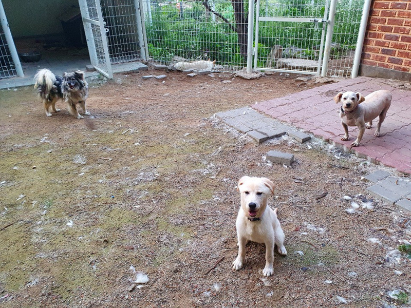 마당에는 청소하기가 무섭게 순돌이와 도담이가 뿜어내는 털로 가득합니다. 흰순이는 털갈이가 끝났는데 순돌이와 도담이는 이제 시작했어요 ~