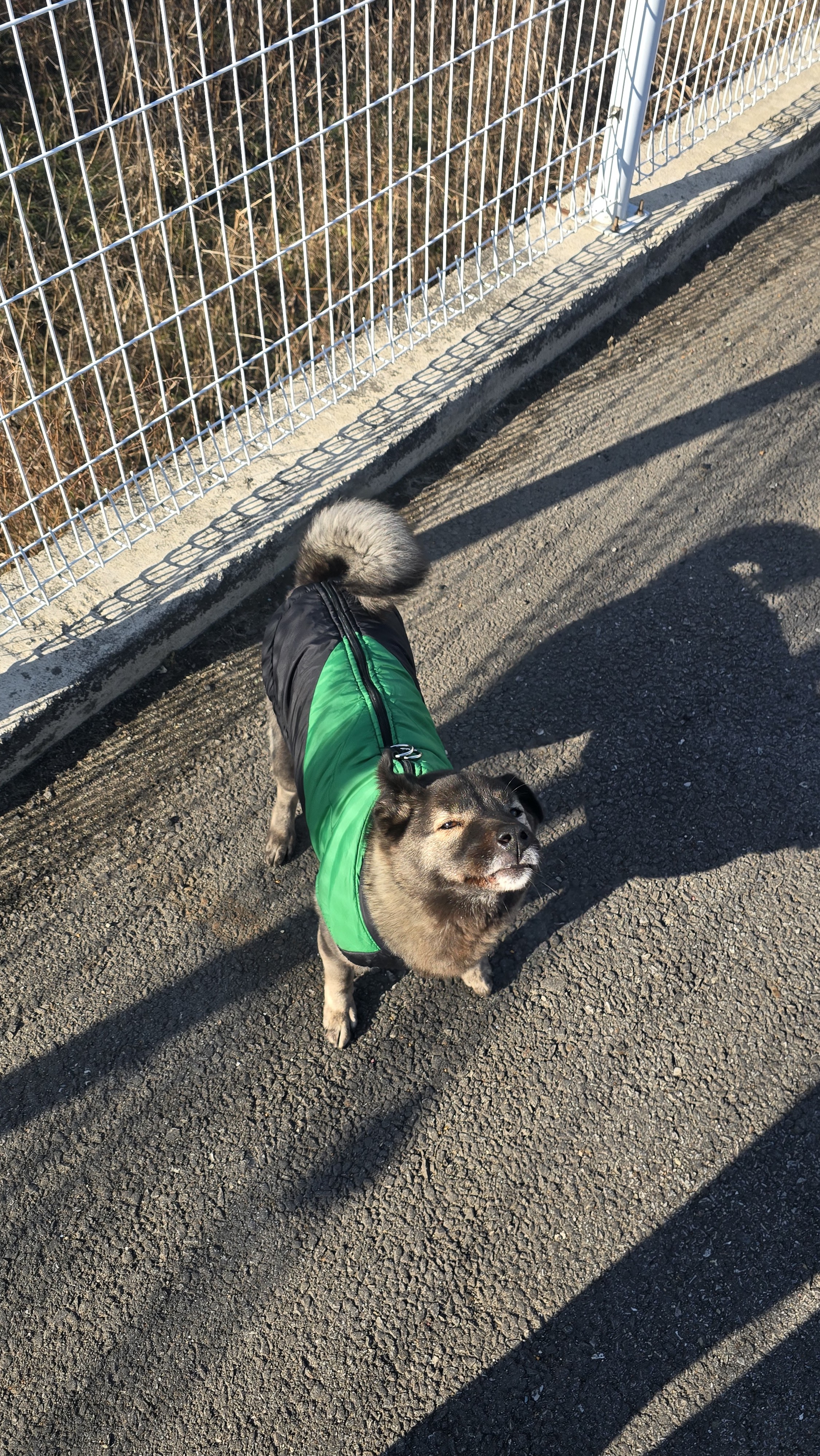 햇빛 쨍한 날에는 눈코입을 더더 모으고 간사를 쳐다보는 보리입니다...
