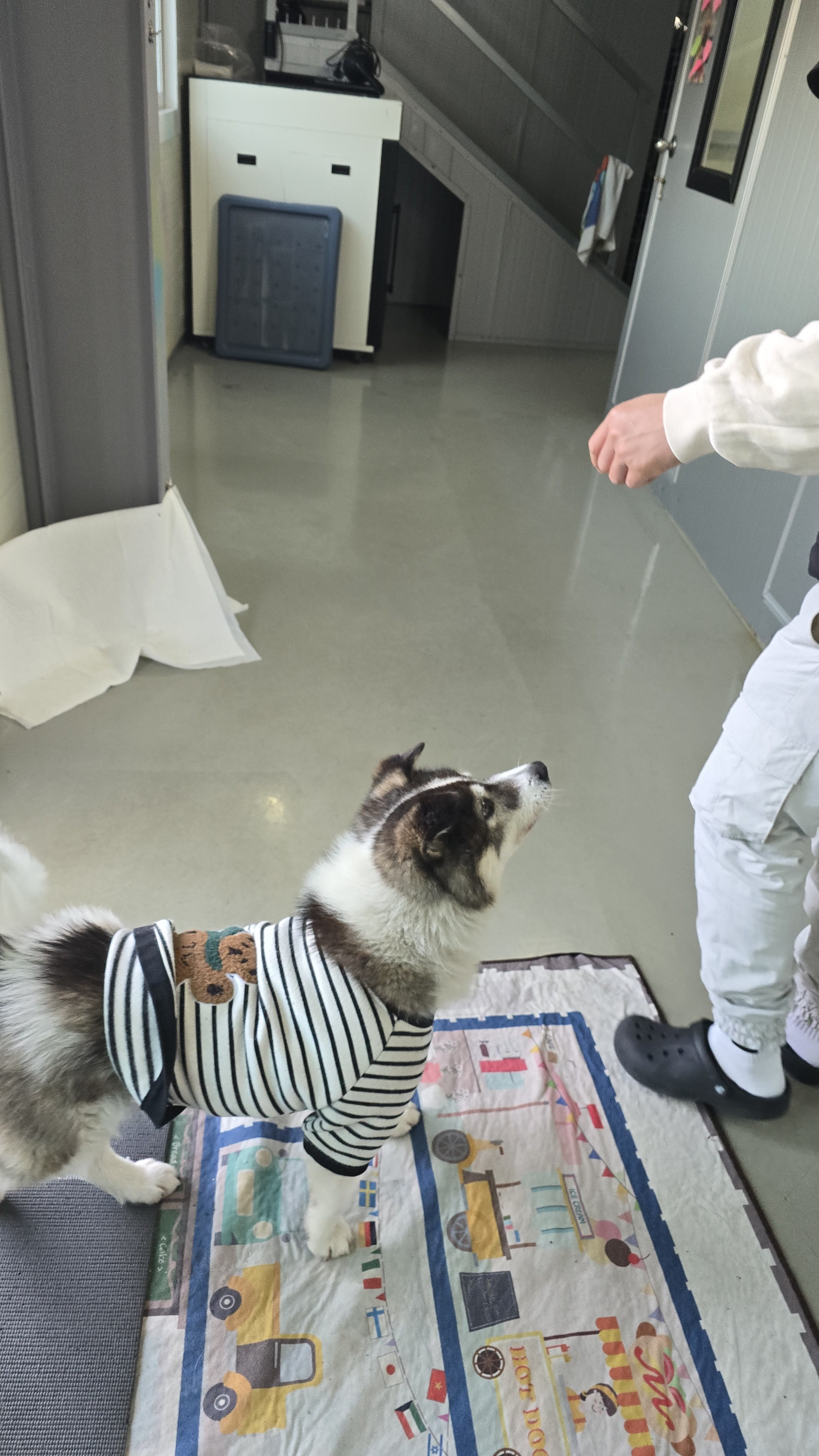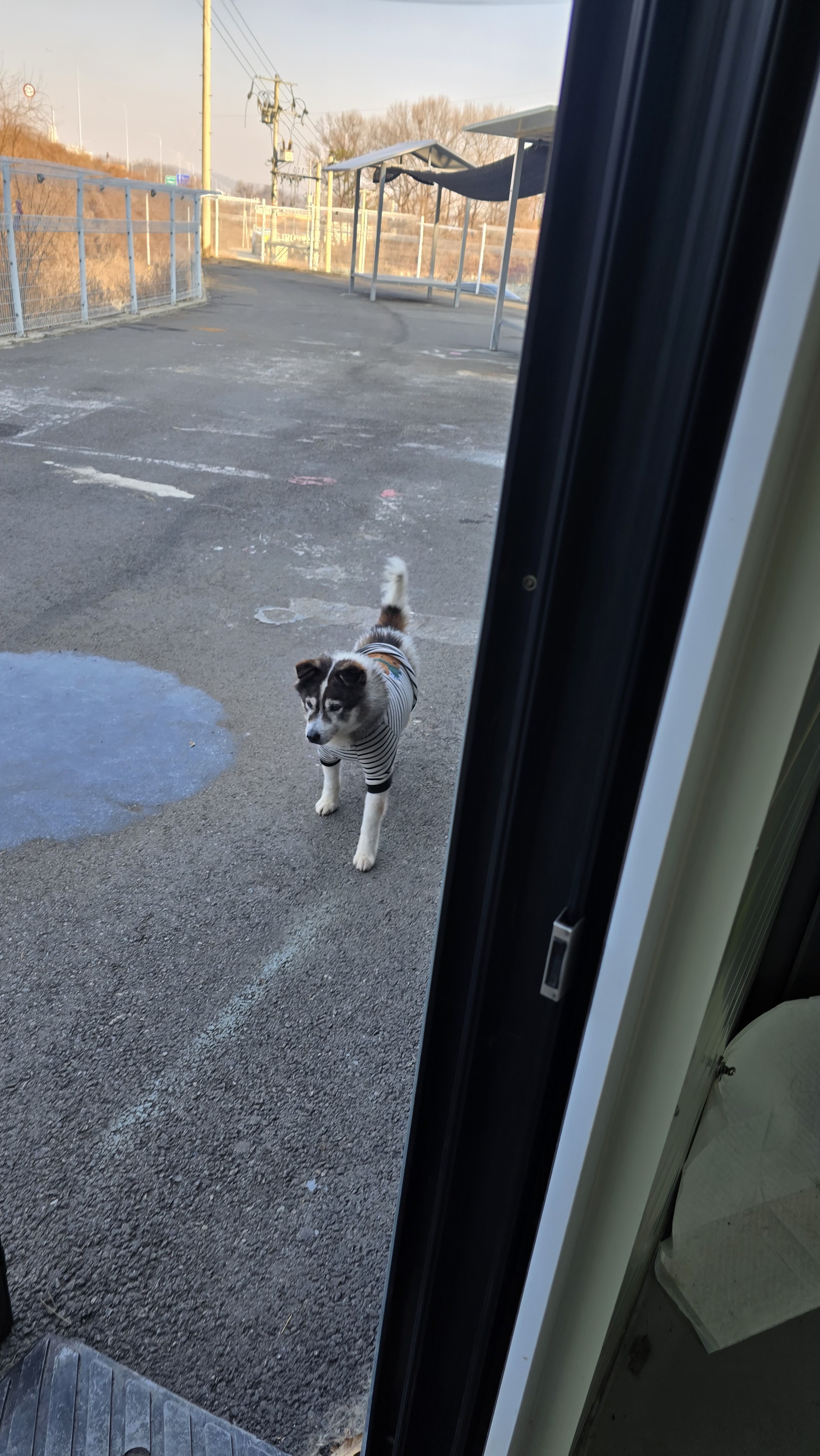 마당에서 신나게 놀다가요...봉사자님 따라 복도에 들어와요~