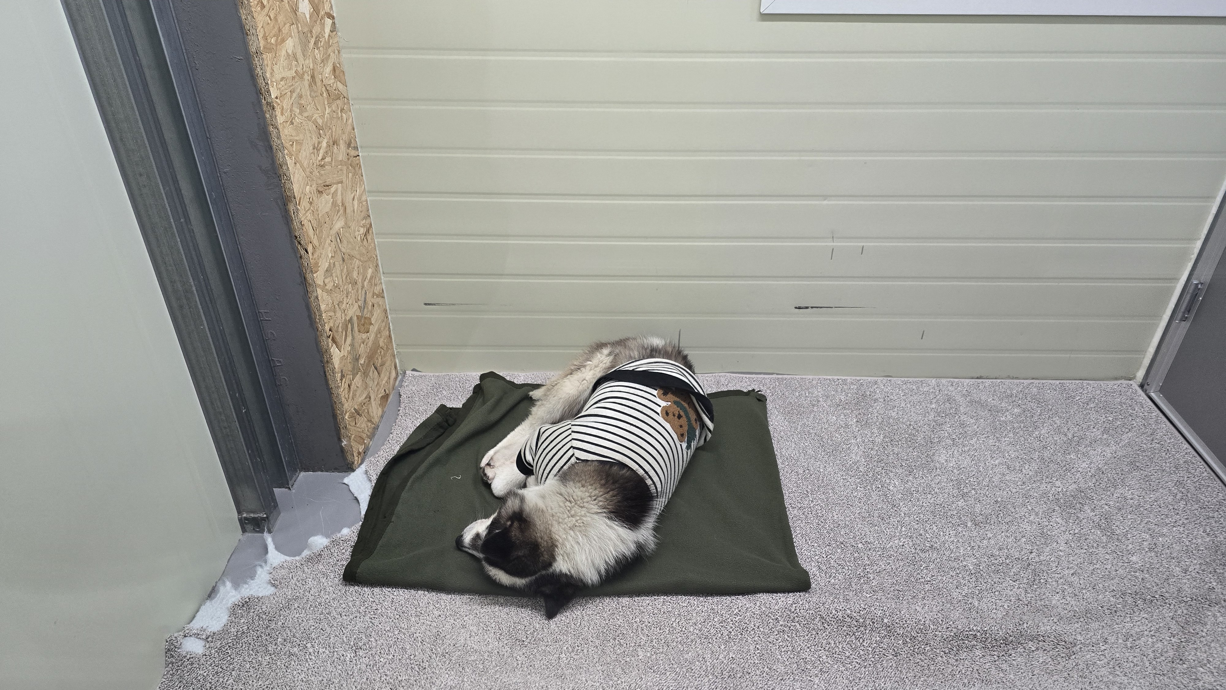 카페트를 자기 방에 딱 맞게 재단 안했다고 화풀이를 엄청 해 놓더니 그래도 안 풀리셨는지.. 담요에까지 그 화가 미칩니다..ㅎㅎ