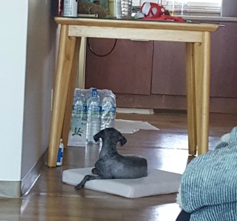 곧 화장실에 갈 때도 쫓아오고, 설거지 할 때도 와서 치대고, 의자에 앉아 있었더니 또 오더라구요. 바닥에 앉으니 냉큼 무릎에 와서 파고들고, 안아달라고 매달렸습니다. 아무래도 분리불안이 생기기 쉬울 것 같아서 터그 놀이 조금 더 하고 방석에서 자도록 무반응으로 유도해서 지금은 다시 방석에 가서 자고 있어요. 저는 분리불안 훈련법에 대한 동영상 찾아보면서 조금씩 더 까미가 좋은 독립성을 가질 수 있도록 공부하고 있습니다. 원래 오늘 학원에 가는 날인데 취소하고 수요일로 옮겼거든요. 수요일에는 까미가 제가 없어도 기쁘게 집에서 쉴 수 있도록 열심히 훈련하려고 합니다.