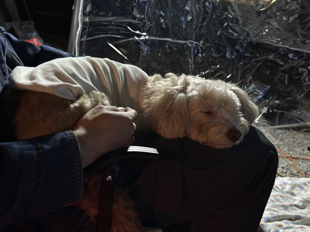 저 루루가 남편 무릎에 앉아서 쉬다가 잠이 든거에요!