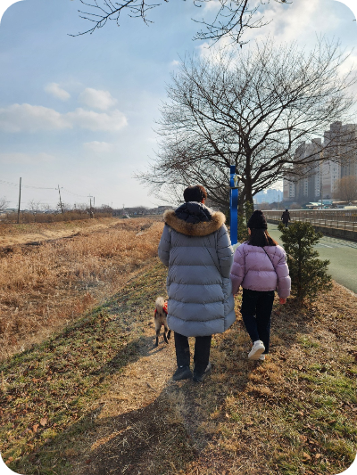 새해 첫날 떡국아닌 특식도 먹고 시윤이 언니랑 약속한 계양천에서 산책도 하고