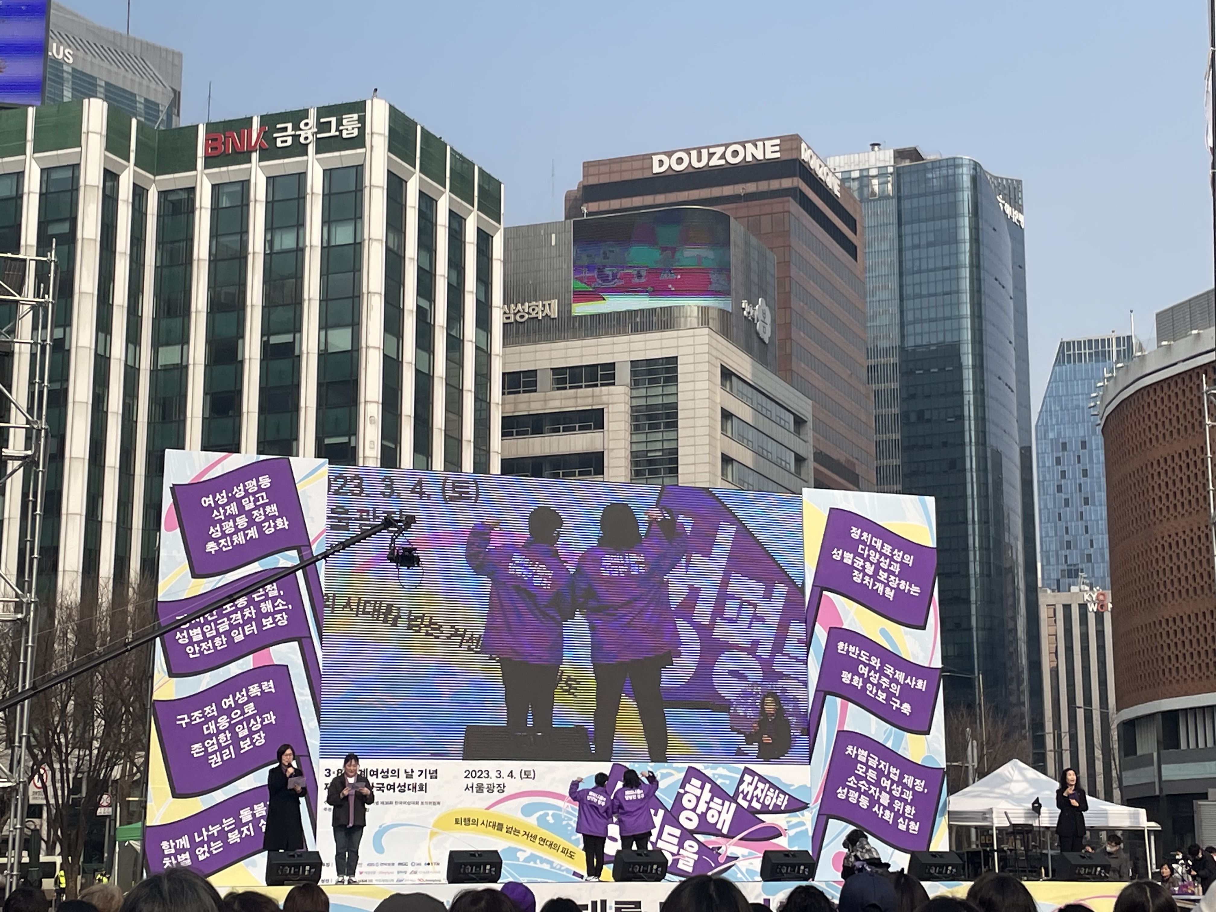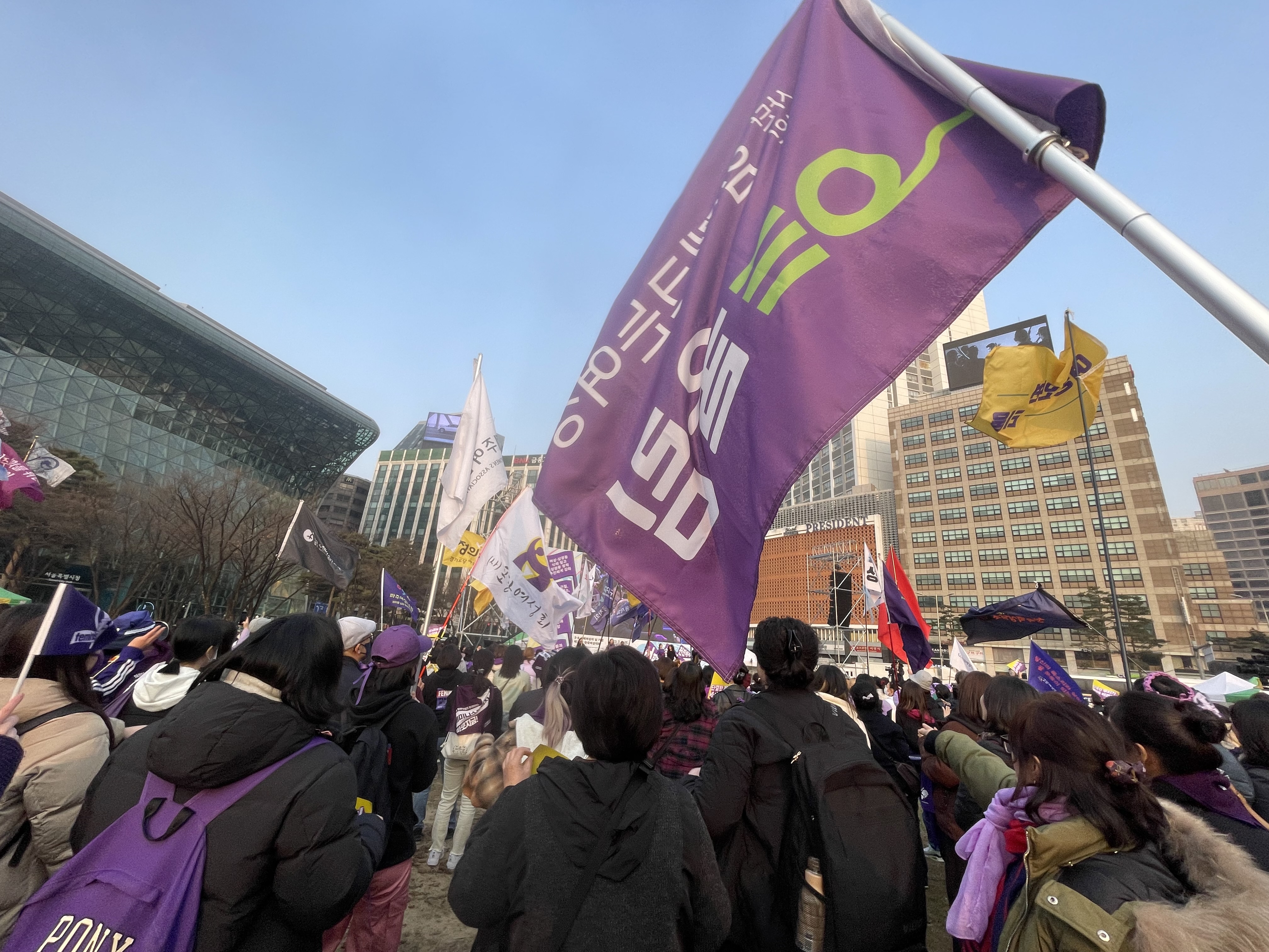 페미니스트 축제의 날인 <3.8여성의날>을 기념하는 여성대회가 4일 서울광장에서 진행되었습니다.
