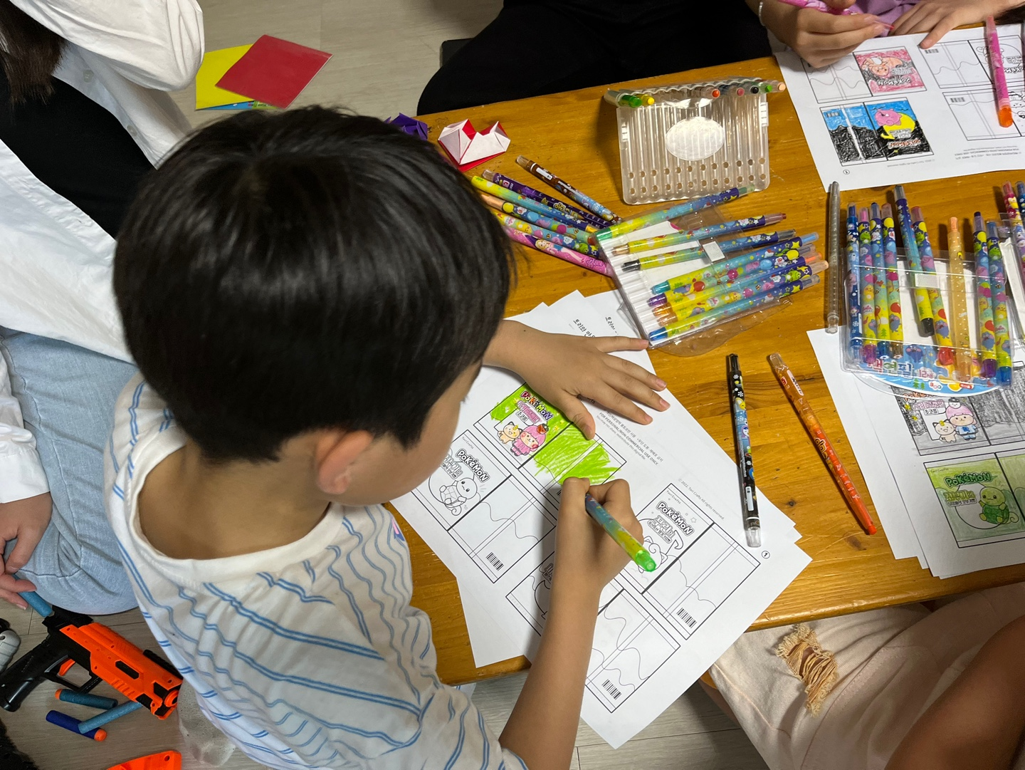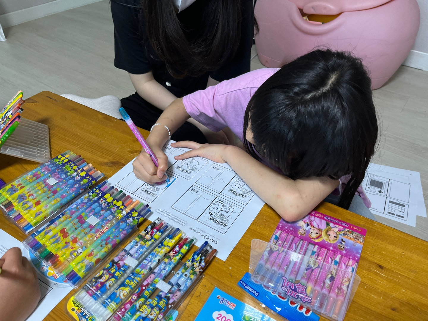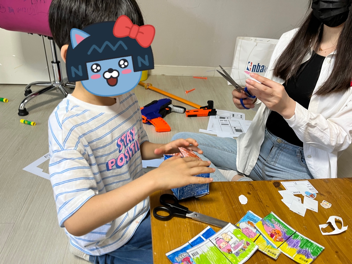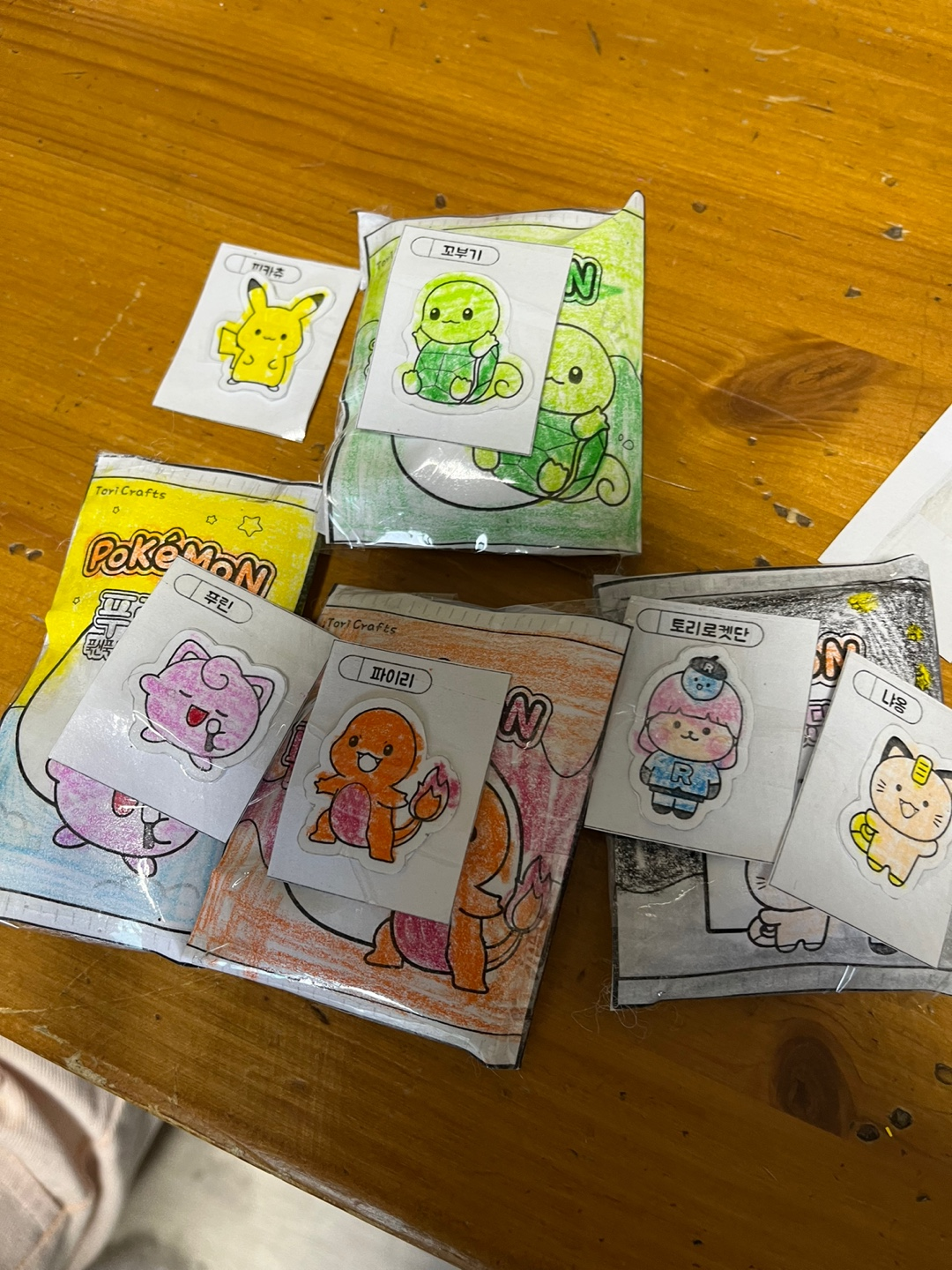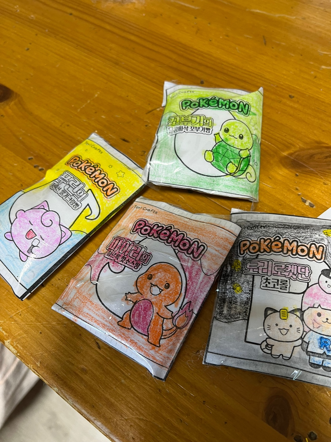 포켓몬빵을 포장할 박스도 색칠하고 있네요!!