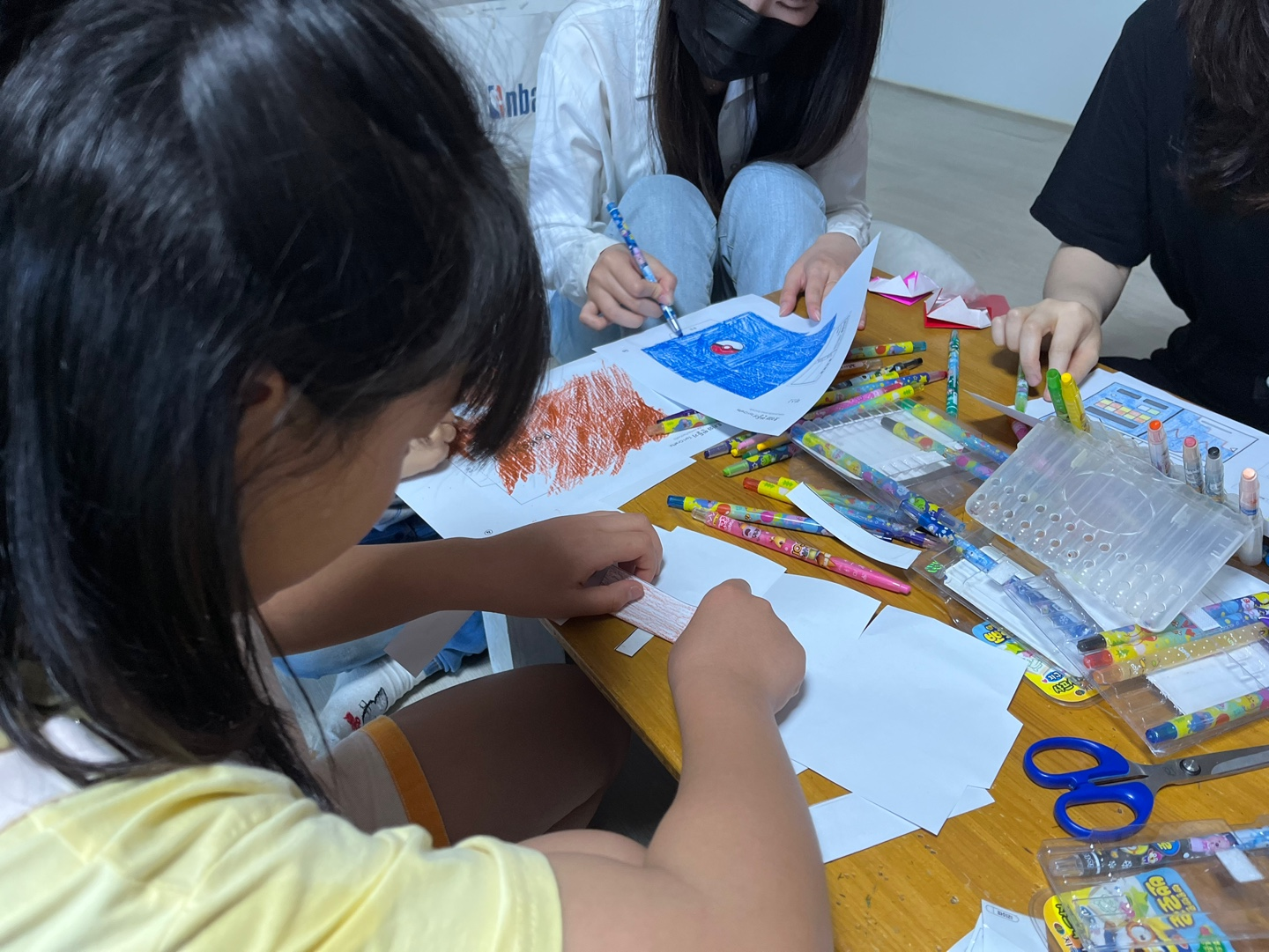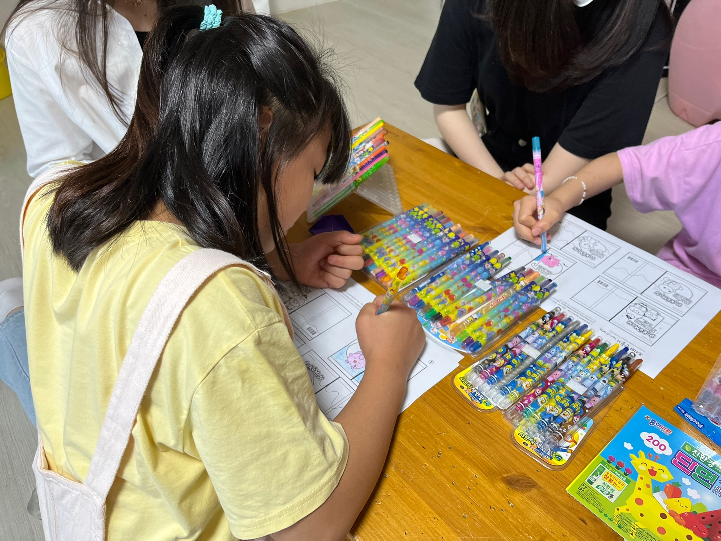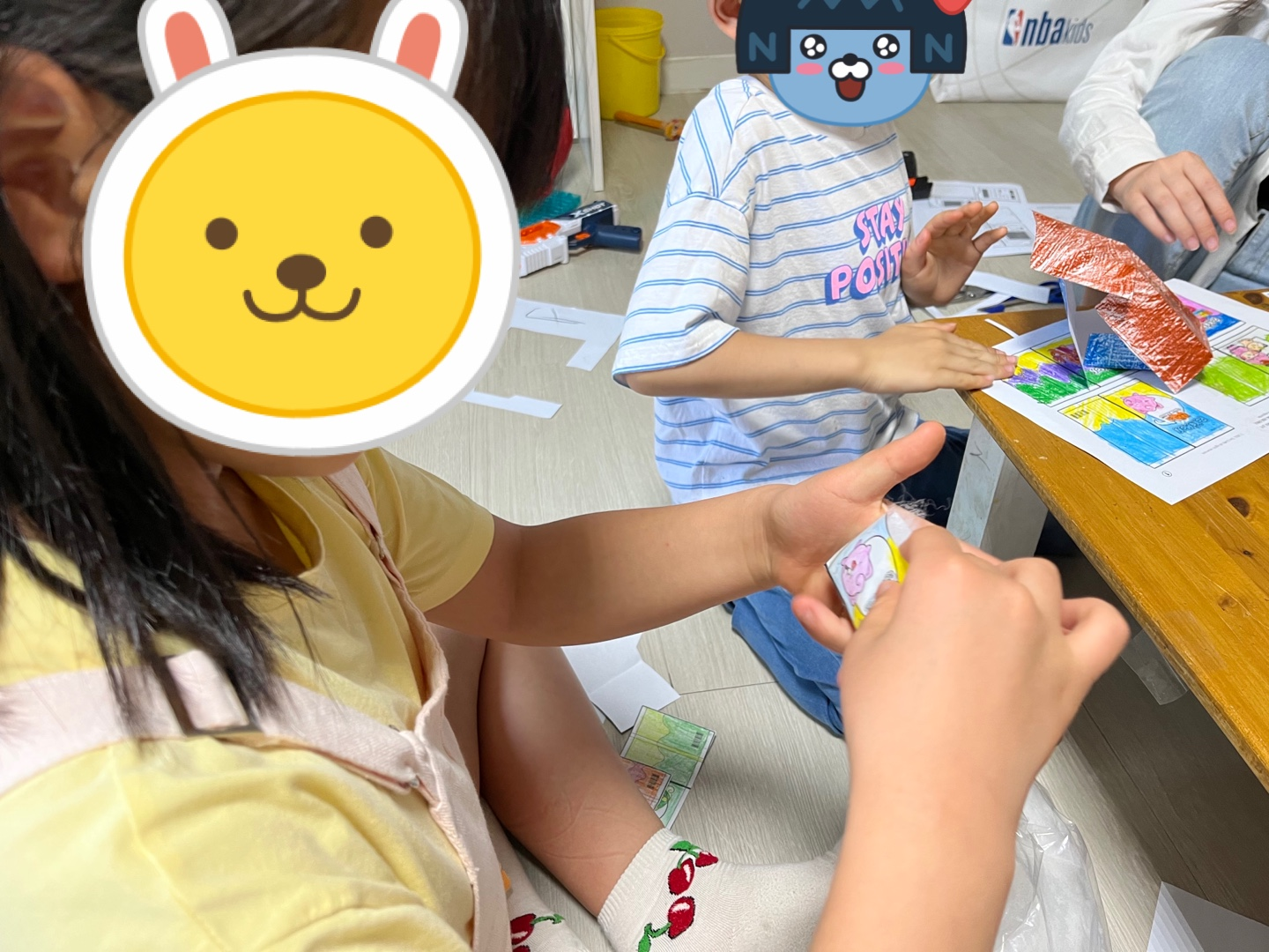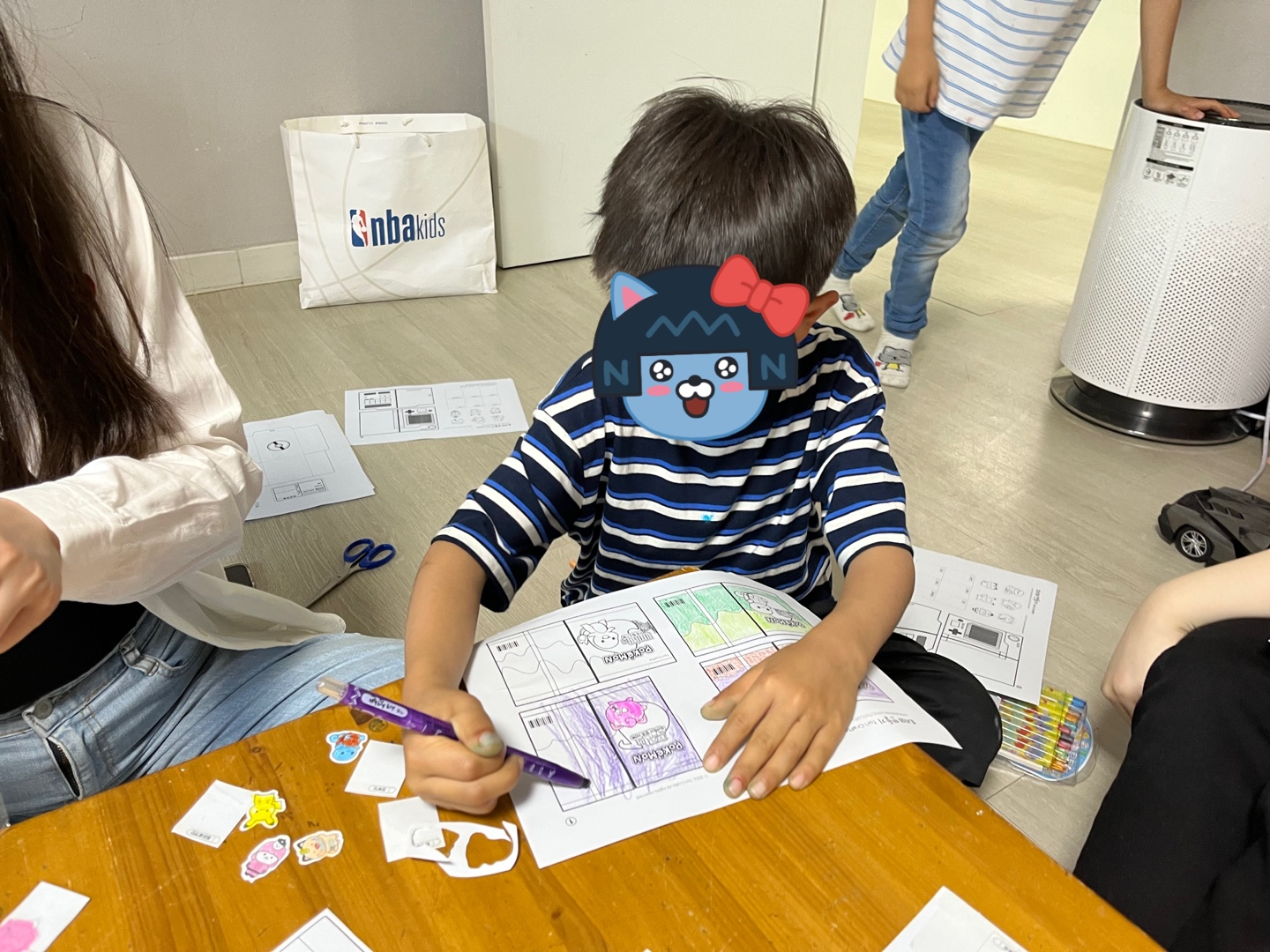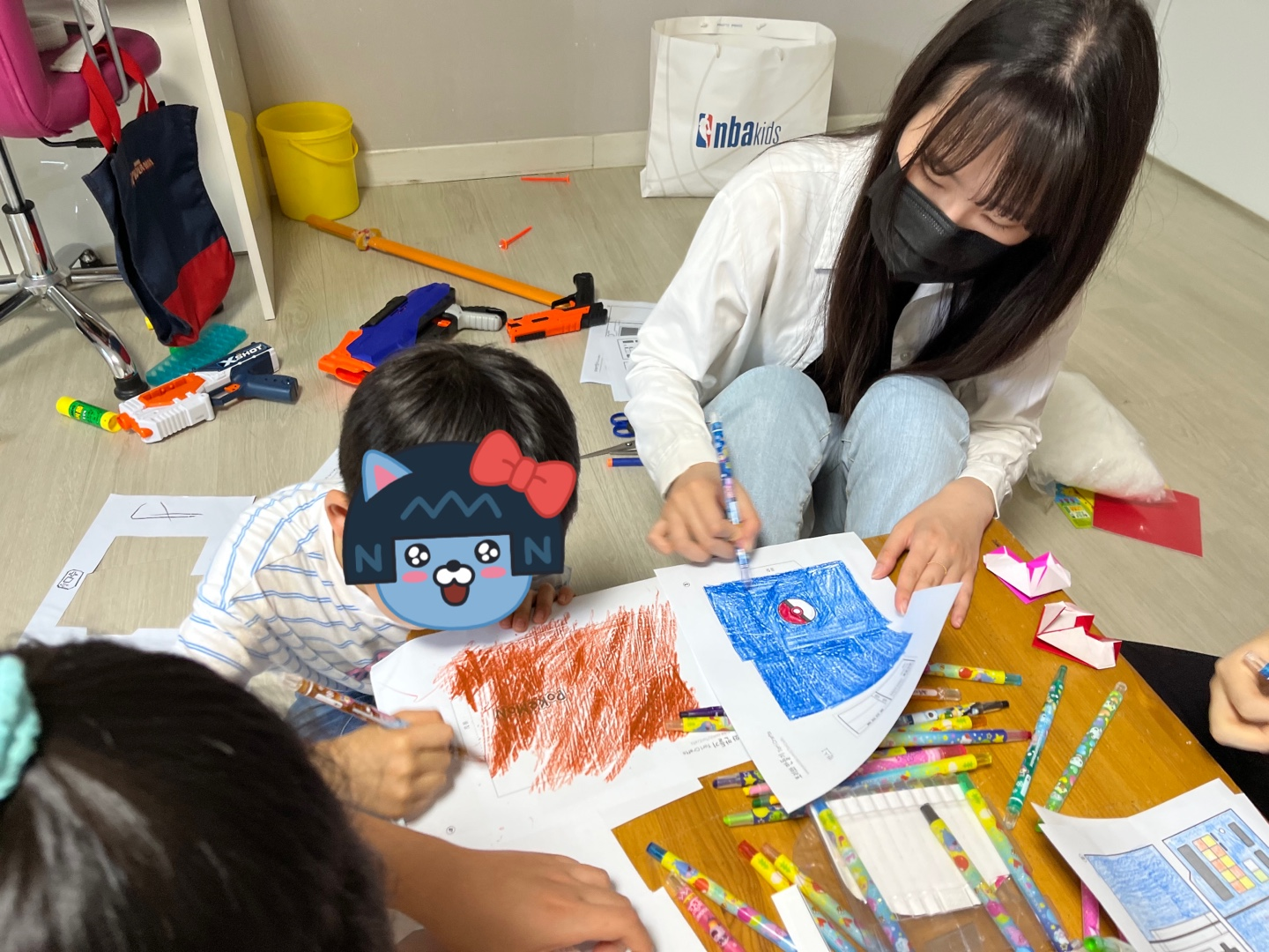 포켓몬빵을 포장할 박스도 색칠하고 있네요!!