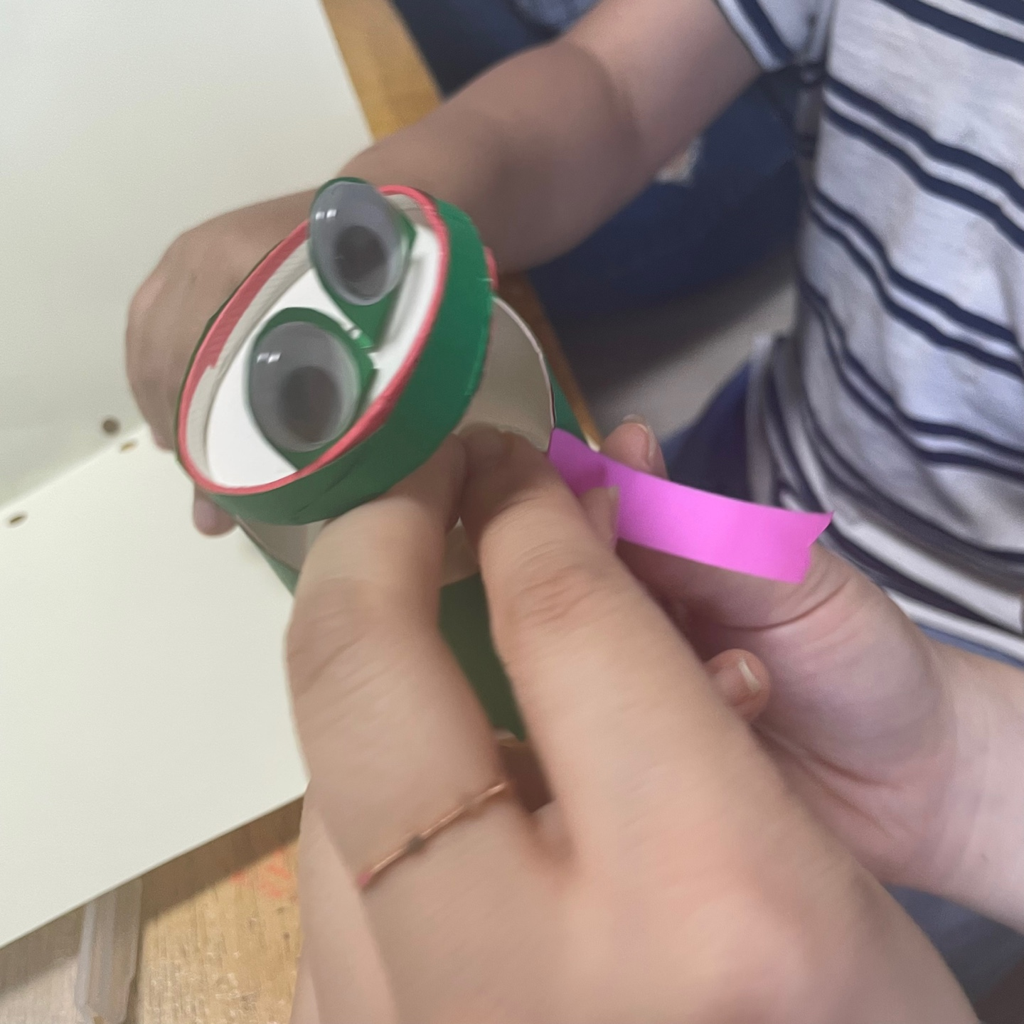 개구리의 눈과 혀를 잘 붙여주면 완성입니다ㅎㅎ~