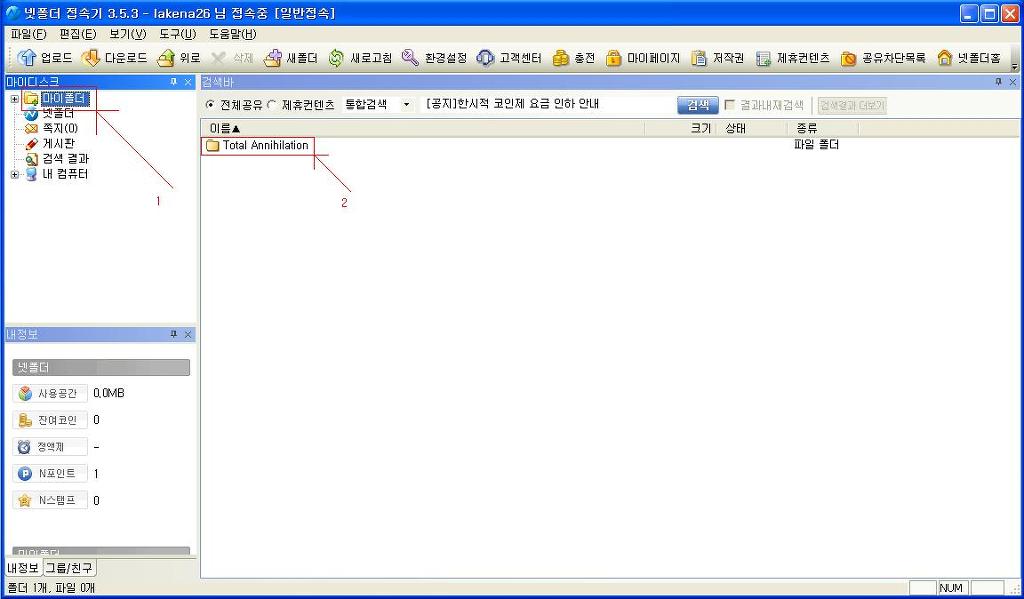 넷폴더 전용 프로그램 다운로드 <- 링크 클릭후 좌측 로그인메뉴 아래의 넷폴더 접속기를 다운로드 해주세요.
