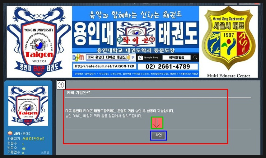 8. 카페 가입 완료! 확인 클릭.