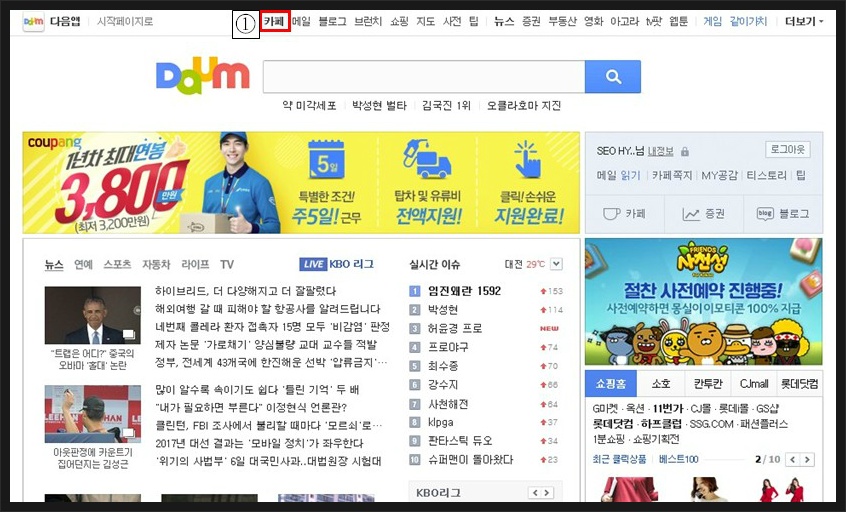 1. 다음 (www.daum.net)에서 카페 클릭.