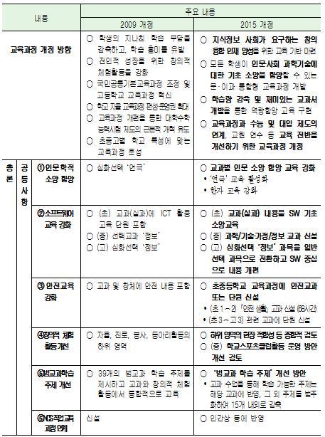 □ 2014.10 ~ 2015년 하반기 각론 교육과정 개정