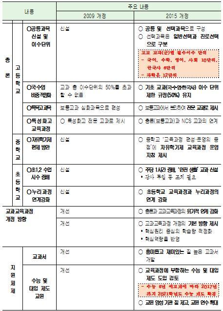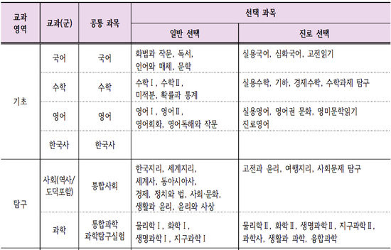 - 특히 고등학교의 경우 통합적 사고력을 키우는 '통합사회' 및 '통합과학' 과목을 신설한다.