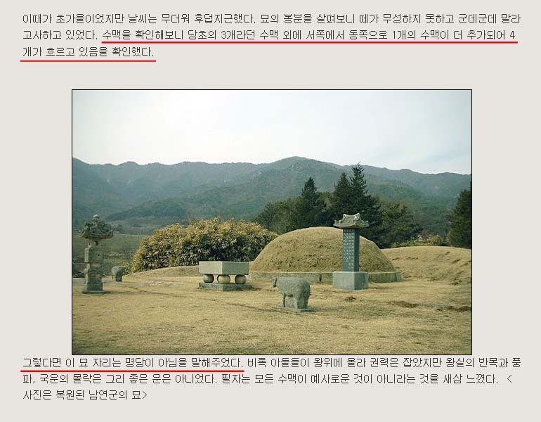 <사진1> 선인 수맥연구학회의 남연군 묘소 내용
