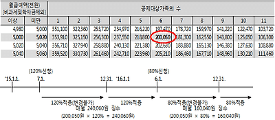 (사례) 월급여액 500만원이고, 부양가족 4명(20세이하 자녀 2명 포함)인 근로자가 2015.7.1. 120%를 신청하여 원천징수하다가 2016.6.1. 80%로 변경신청하는 경우