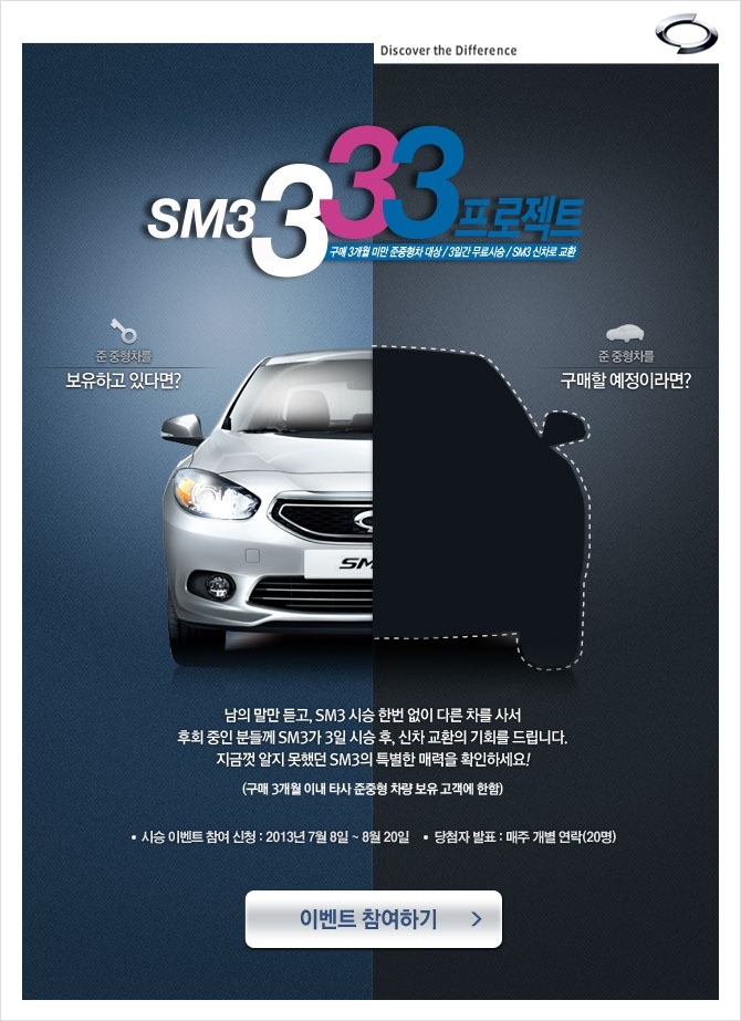 시승 고객이 원한다면 SM3 신차로 교환해 주는 프로젝트에요