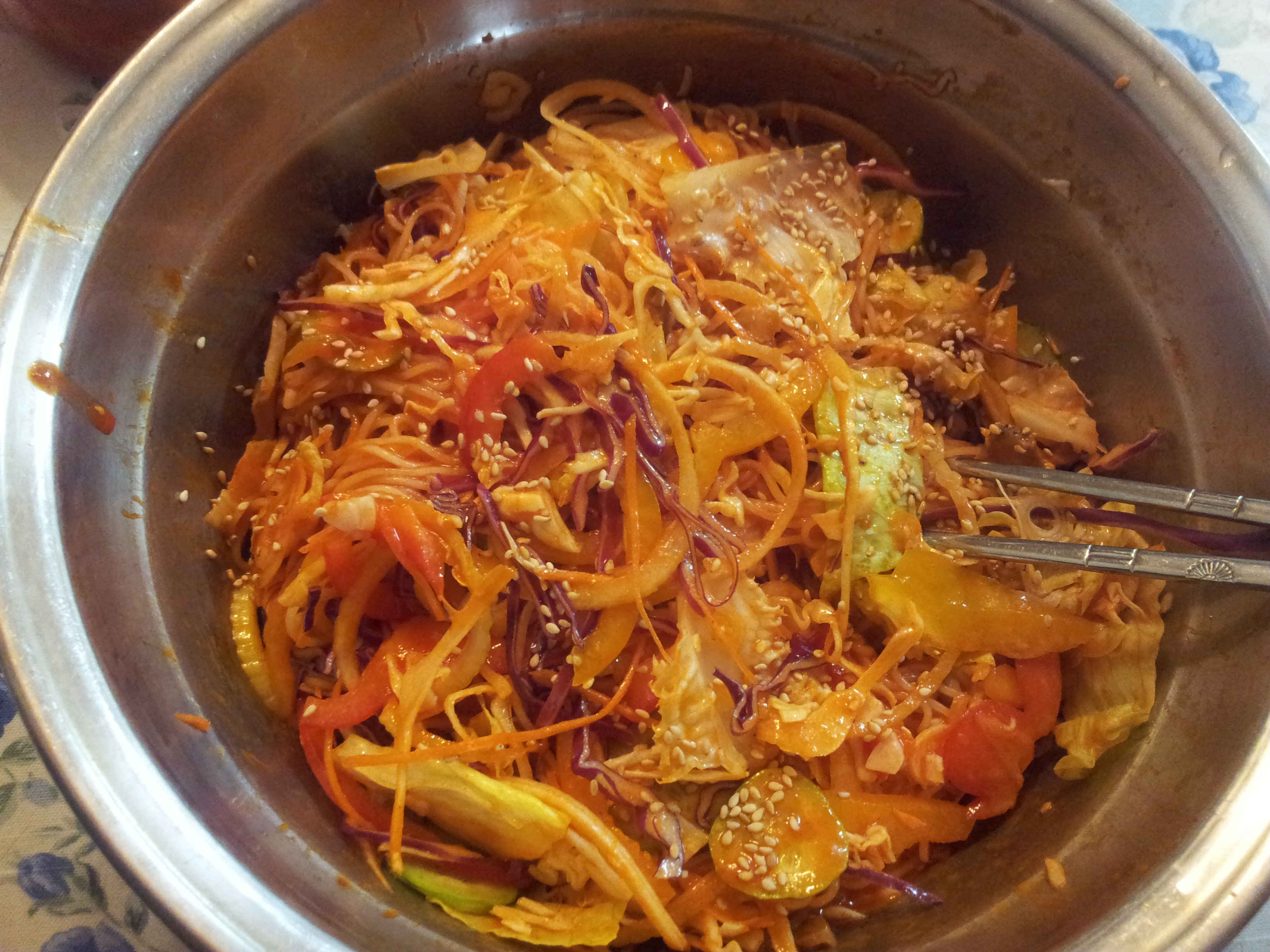 열심히 일허고 온 산다에게 짱쓰가 내놓는 양푼 비밤국수에 튀김만두 도리뱅뱅 비빔면~