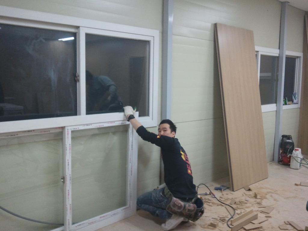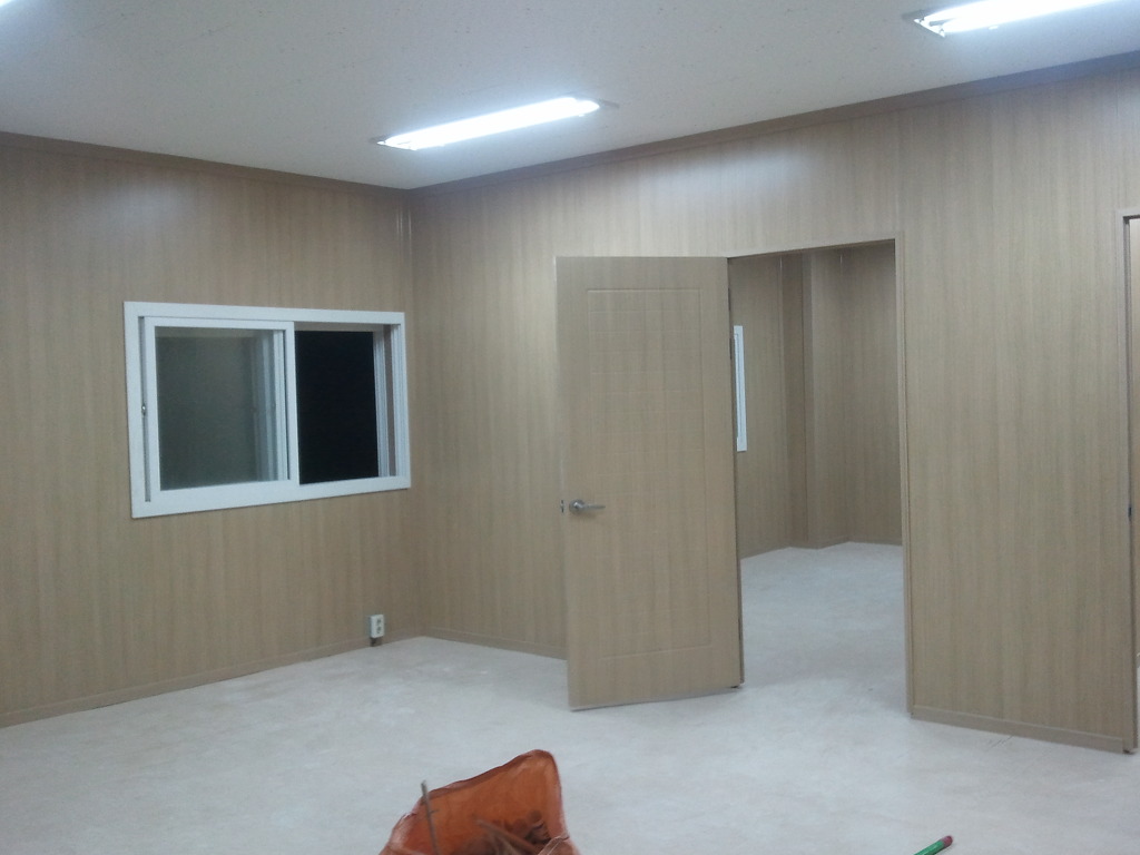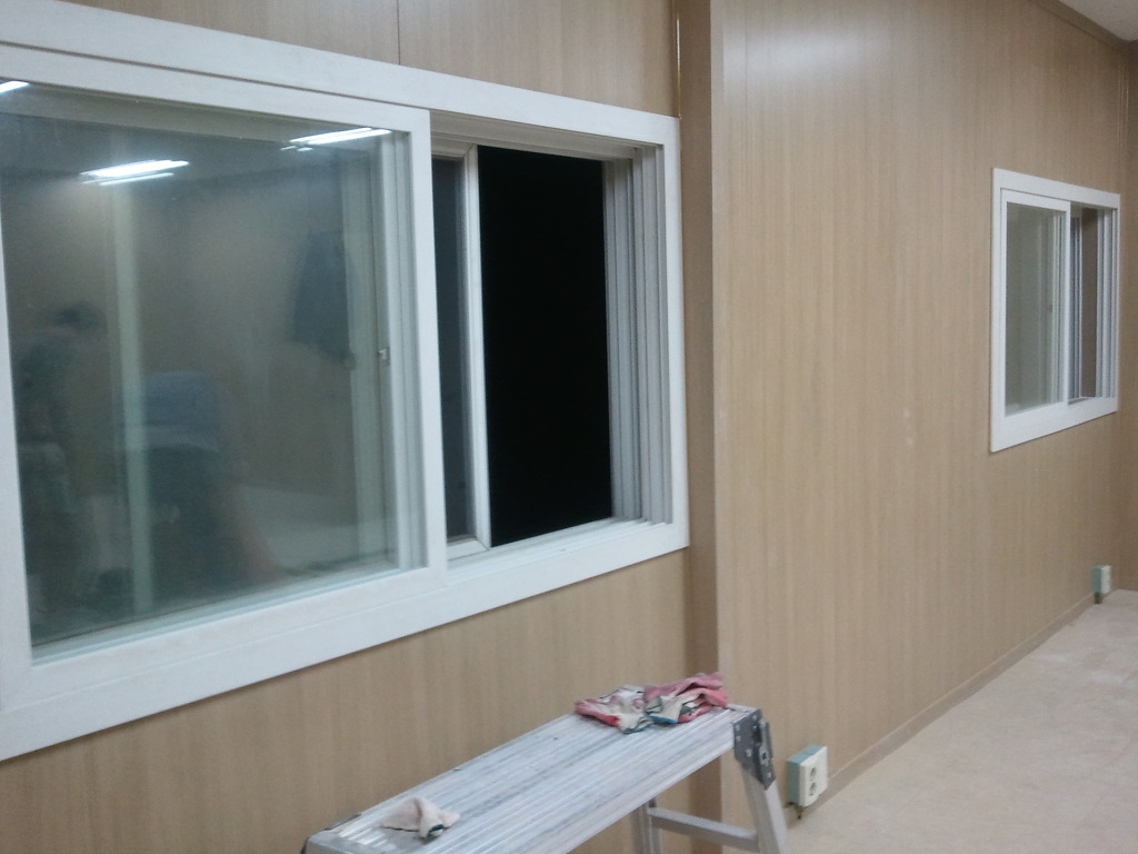 조립식 건물 안쪽에 렙핑 칸막이를 이용해서 벽을 둘러싸는 작업이구요...