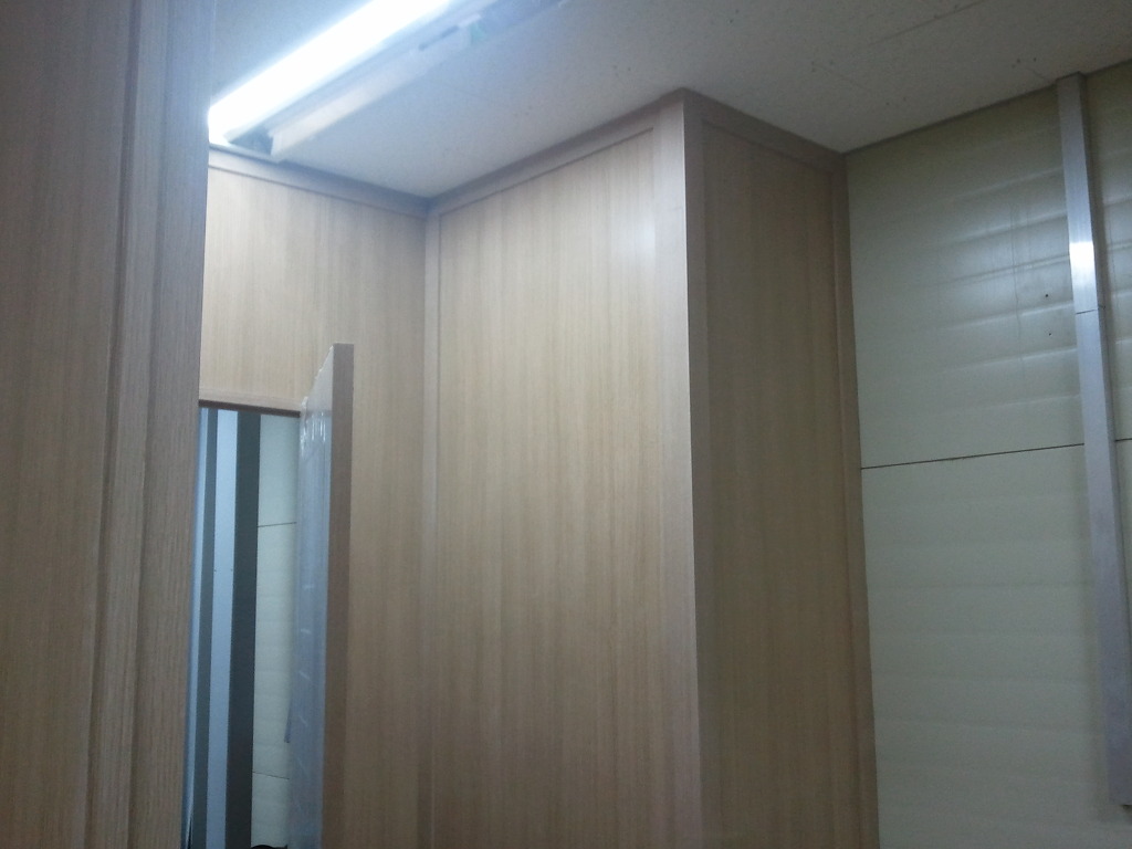 정말 난해하고 코너기둥 감싸고 칸막이 아래부분 타공해서 여닫을수 있도록 만들었구요....몰딩마감까지 완료했습니다...