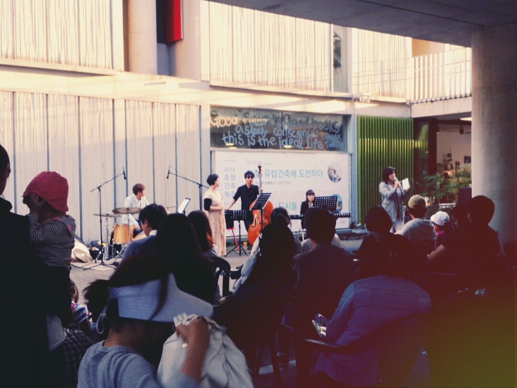 걷다보니 그 음악소리는 틀어주는 소리가 아니라 진짜 연주하는 소리였어요!