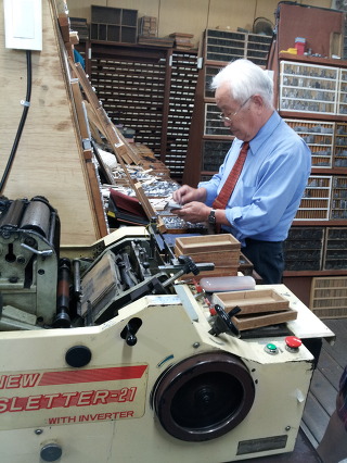 활자를 하나하나 맞추고 있는 모습, 세월이 아직 스치지 않은 것 같은 공간..