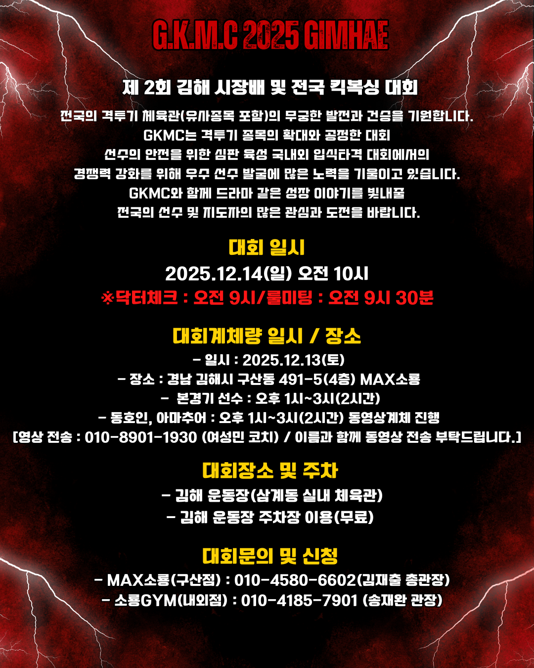 1. 대회명칭 : 제2회 김해 시장배 및 전국 킥복싱대회