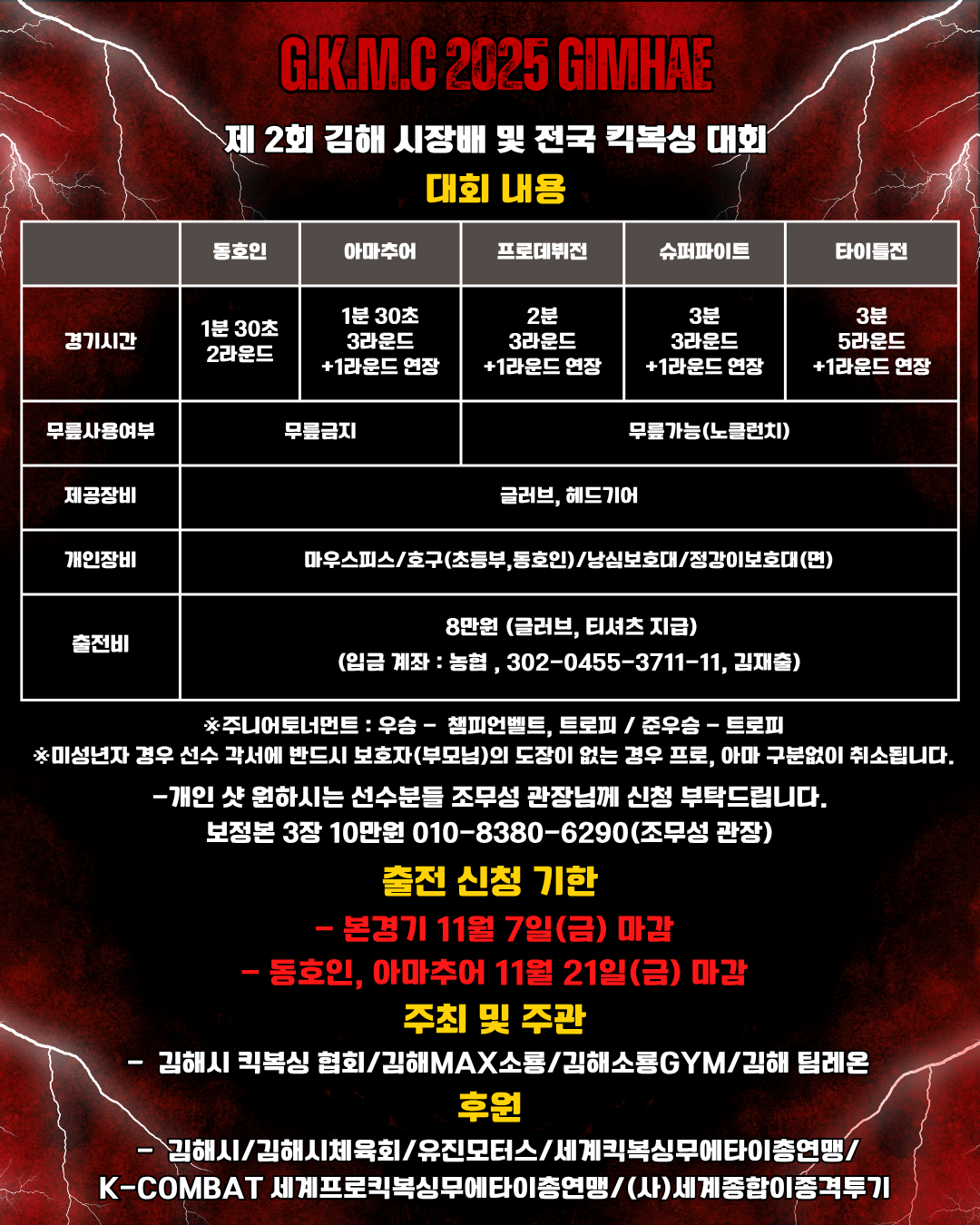 *아마추어 접수기간은 11월21일까지 빠른출전신청부탁드립니다.