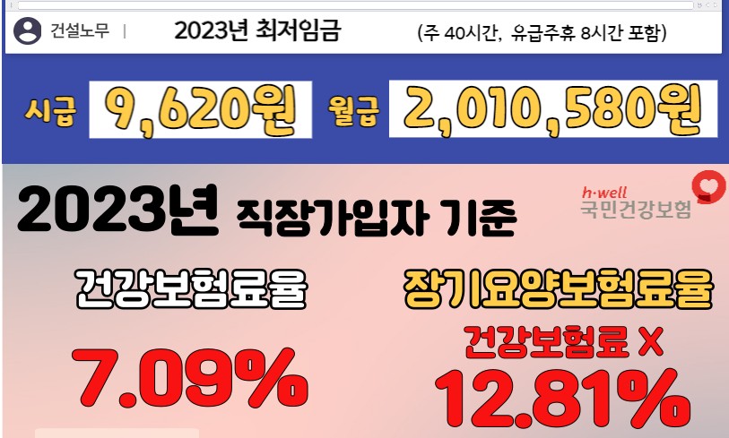 2023년의 최저임금 및 건강보험요율(https://cafe.naver.com/buildingnomu/32659) 2022.12.24. 추
