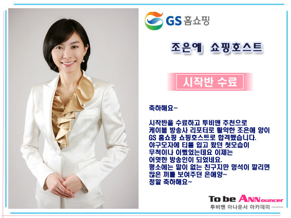GS 홈쇼핑 조은애 쇼핑호스트-투비앤 아나운서 아카데미- 작성자투비앤|작성시간09.07.23|조회수943 목록 댓글 0 글자크기 작게가 글자크기 크게가 -------------------------------- 바르고 정직한 교육 투비앤 아나운서 아카데미 다음검색 현재 게시글 추가 기능 열기 북마크 공유하기 신고 센터로 신고 댓글 댓글 0 댓글쓰기 댓글 리스트