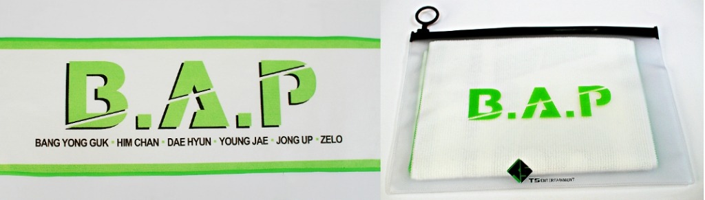 현재 TS ENT에서 제작, 판매중인 공식 굿즈는 B.A.P 공식 슬로건과 화보집입니다.