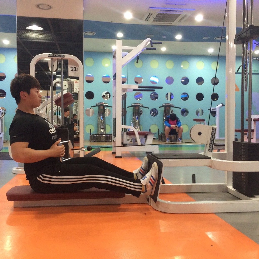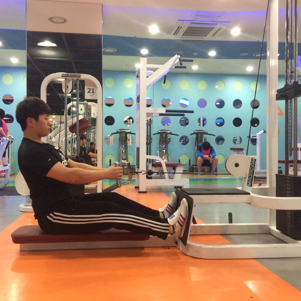 로우 로우 머신: 랫풀다운 다음으로 많이 하는 등운동 이며, 광배근 하부와